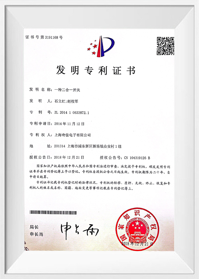 প্রযুক্তিগত উদ্ভাবন এবং মানককরণের ক্ষেত্রে, কোম্পানিটি ফলপ্রসূ ফলাফল অর্জন করেছে, 10 টিরও বেশি উদ্ভাবনের পেটেন্ট সহ বিভিন্ন ধরণের 60 টিরও বেশি পেটেন্ট ধারণ করেছে। কোম্পানিটি অ্যাপ্লায়েন্স সুইচের জন্য অসংখ্য জাতীয় এবং শিল্প মান প্রণয়ন এবং সংশোধনে অংশগ্রহণ করেছে, ক্রমাগত শিল্পে প্রযুক্তিগত মানককরণের বিকাশকে প্রচার করছে। তার অসামান্য ব্যাপক শক্তিকে কাজে লাগিয়ে, কোম্পানিটিকে "সাংহাই হারমোনিয়াস লেবার রিলেশনস এন্টারপ্রাইজ," "সাংহাই হাই-টেক এন্টারপ্রাইজ," এবং "সাংহাই বিশেষায়িত এবং উদ্ভাবনী এন্টারপ্রাইজ" সহ আঞ্চলিক অর্থনৈতিক ও শিল্প উন্নয়নে তার উল্লেখযোগ্য অবদান প্রদর্শন করে অসংখ্য সম্মানসূচক শিরোনাম প্রদান করা হয়েছে।