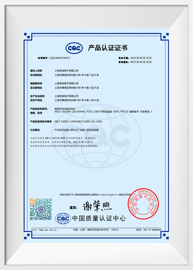 পণ্যের গুণমান এবং আন্তর্জাতিক সম্মতি নিশ্চিত করার জন্য, কোম্পানি একটি অত্যাধুনিক সুইচ টেস্টিং সেন্টার (ল্যাবরেটরি) প্রতিষ্ঠা করেছে যা US UL WTDP উইটনেসড ল্যাবরেটরি এবং সম্পূর্ণরূপে ISO 9001 কোয়ালিটি ম্যানেজমেন্ট সিস্টেম দ্বারা স্বীকৃত। এর সম্পূর্ণ পণ্য লাইন সফলভাবে একাধিক আন্তর্জাতিক সার্টিফিকেশন পাস করেছে, যার মধ্যে রয়েছে মার্কিন যুক্তরাষ্ট্রে UL এবং ETL, ইউরোপে TÜV, CE, SEMKO এবং CB, দক্ষিণ কোরিয়ার KC এবং চীনের CQC, বিভিন্ন বৈশ্বিক বাজারের অ্যাক্সেসের প্রয়োজনীয়তা সম্পূর্ণরূপে পূরণ করে।
